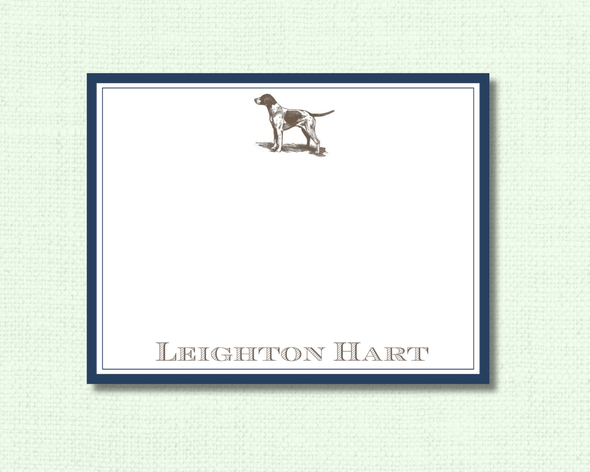 Perfect for sporting enthusiasts and dog lovers alike, our personalized pointer bird dog notecards feature a classic watercolor illustration of a pointing bird dog alongside your custom name or monogram. Ideal for thank-you notes, outdoor gatherings, and thoughtful gifts with timeless, Southern style.