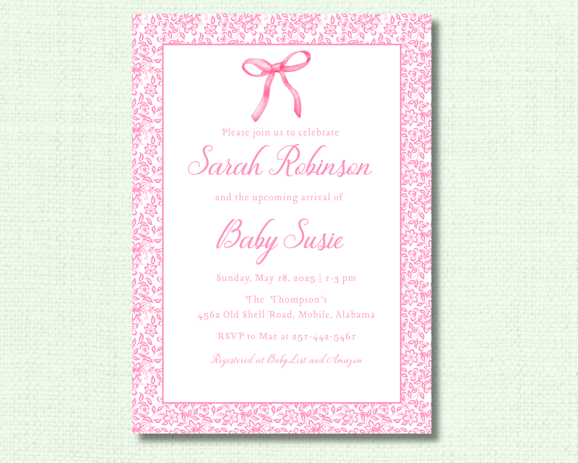 Celebrate baby in blooming color with our Pink Blooms Baby Shower Invitation. Featuring a vibrant floral border and a sweet watercolor ribbon at the top, this cheerful design is perfect for honoring a baby girl in fun, feminine style.